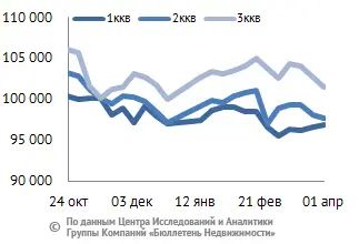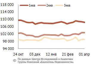 | Цена по типу квартир, руб/кв. м |