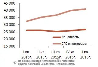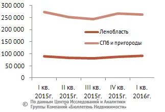 Изменение стоимости домостроений (без учета стоимости земли) за квартал составило 3,6% по Ленинградской области и 2,5% по Петербургу и пригородным районам. На конец марта 2016 года средняя цена предложения домостроений по области составила 26,7 тыс. руб. за кв. м (в среднем 3 млн руб. за объект), по районам Петербурга и пригородам – 40,8 тыс. руб. за кв. м (в среднем 7,2 млн руб. за строение, без учета стоимости участка).