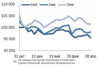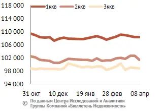 | Цена по типу квартир, руб/кв. м |