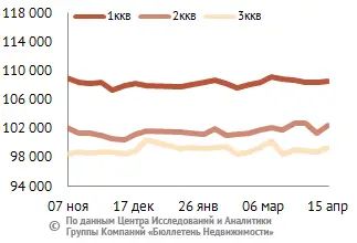 Доля объектов, цена которых меньше 85 тыс. руб. за кв. м, составляет 23,3% от общего объема предложения квартир. Большую долю рынка занимают цены диапазона от 85 до 105 тыс. руб. за кв. м, что составляет 39,9% от объема выставленных на продажу квартир. Диапазон стоимости квадратного метра от 105 до 125 тыс. руб. занимает 22,2%. Доля дорогих объектов, цена которых превышает 125 тыс. руб. за кв. м, – 14,7% от всего предложения.