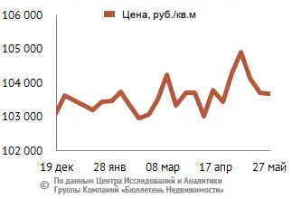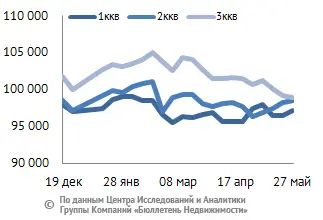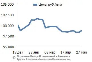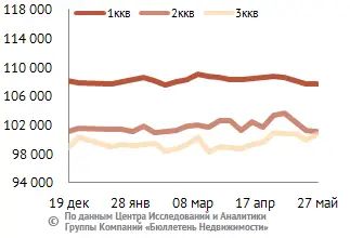 За минувший период изменение средней цены предложения на рынке новостроек в рублевом эквиваленте составило 0,5%, это 446 руб. с кв. м. Показатель средней цены предложения за неделю с 20 мая 2016 года по 27 мая 2016 года – 98,9 тыс. руб. за кв. м. Стоимость предложения в долларах – 1,5 тыс. за кв. м, в евро – 1,4 тыс. за кв. м.