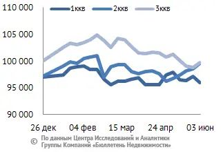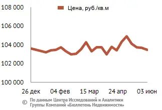 За минувший период изменение средней цены предложения на рынке новостроек в рублевом эквиваленте составило 0,2%, это 209 руб. с кв. м. Показатель средней цены предложения за неделю с 27 мая 2016 года по 03 июня 2016 года – 99,1 тыс. руб. за кв. м. Стоимость предложения в долларах – 1,5 тыс. за кв. м, в евро – 1,3 тыс. за кв. м.