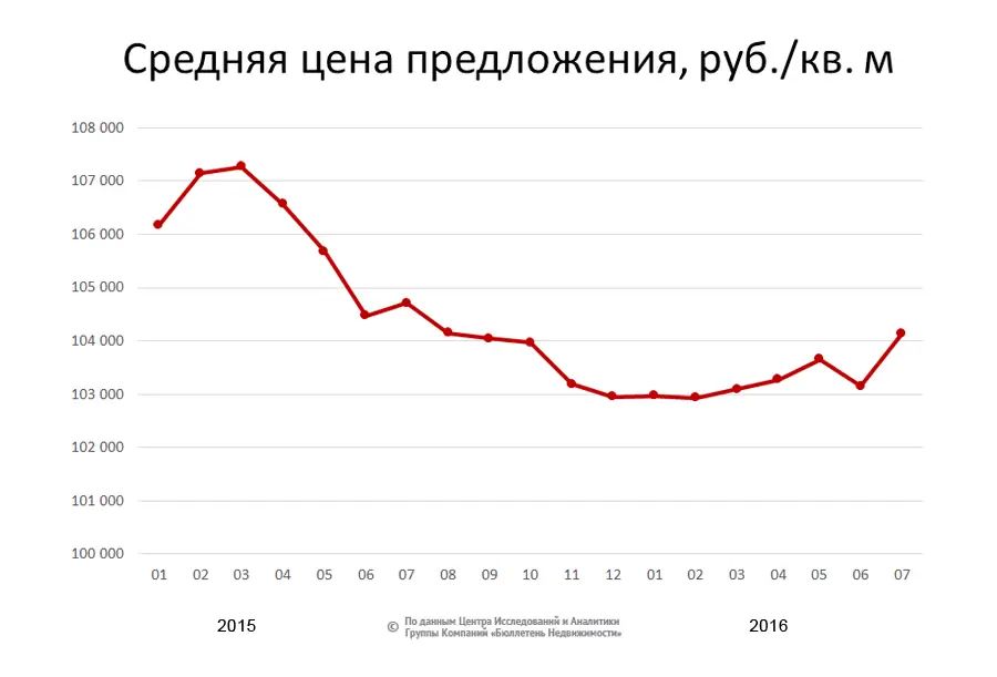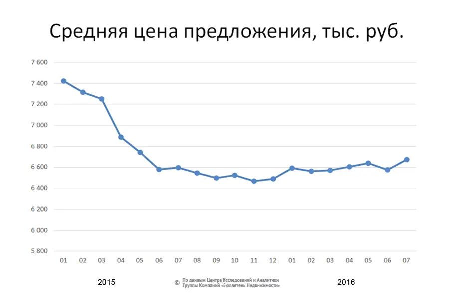 Рынок жилья меняется. Заглянув в ретроспективные данные, предоставленные нашими аналитиками, мы можем увидеть, что в прошлом году средние цены квартир (как в абсолютных значениях, так и за «квадрат») падали, в этом – имели тенденцию к незначительному росту (см. графики 1, 2).