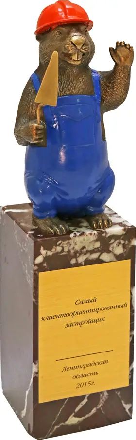 Каждый из них отмечен не одним и не двумя призами и дипломами профессиональных конкурсов (об этом можно узнать у нас на сайте живи.рф). Но самыми ценными мы считаем награды, которыми отмечено наше отношение к жителям этих районов, – как, например, приз «Самому клиентоориентированному застройщику» в виде фигурки работящего бобра, полученный нами от Союза строительных организаций Ленобласти.