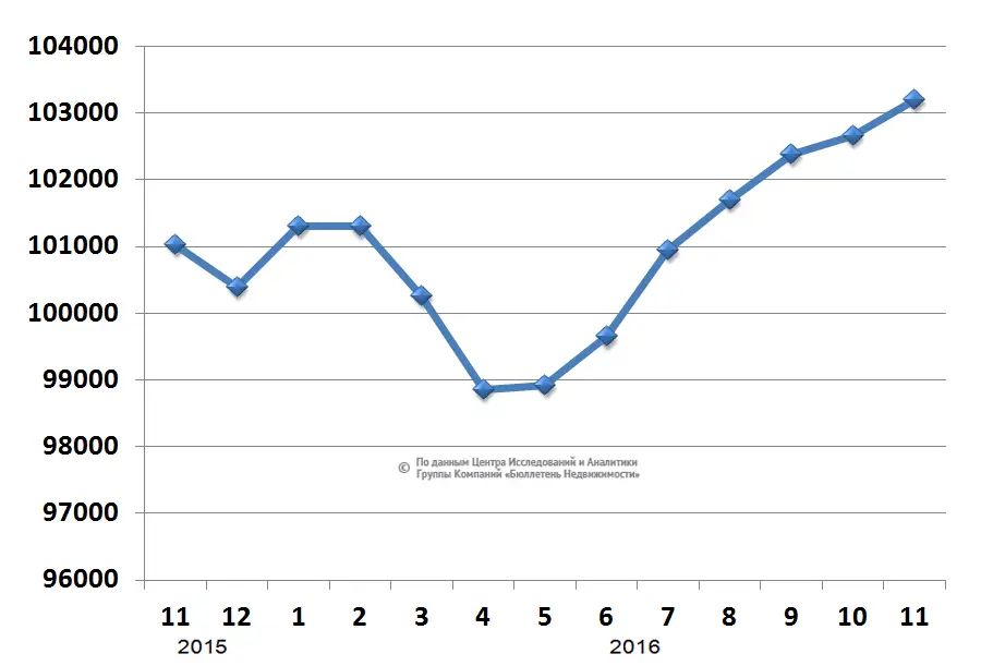 | руб./кв. м | 99 808 | 100 800 | 0.99% | |