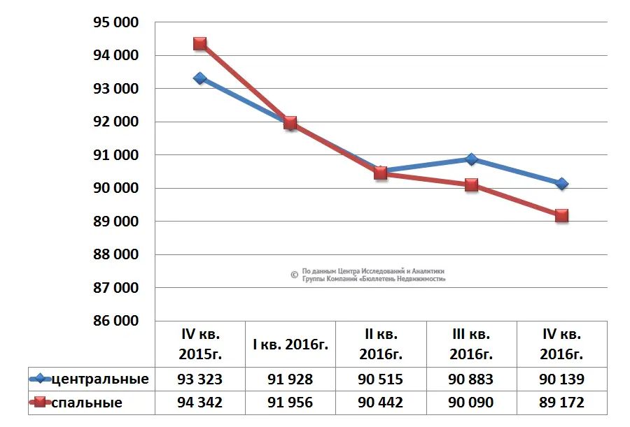 Средняя цена предложения комнат на конец IV квартала 2016 года: