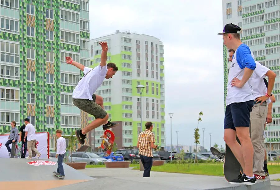 Предусмотрены велосипедные дорожки протяженностью около полутора километров и более ста многоместных велопарковок. Отдельная гордость голландского квартала – скейт-парк, аналогов которому нет в Петербурге. Не забыты и зрители: рядом со спортивными площадками всегда есть удобные скамейки для болельщиков и сочувствующих.