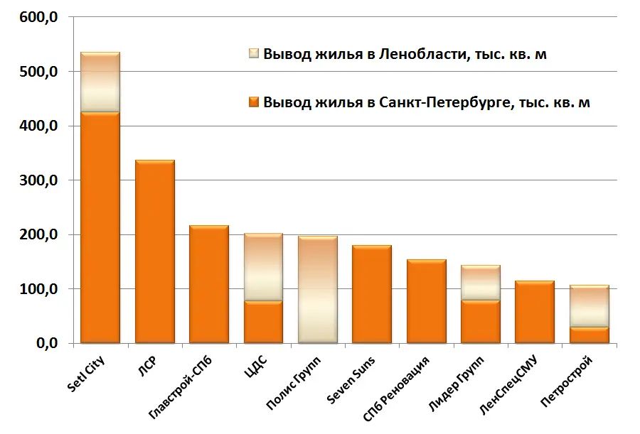 Если первая десятка застройщиков по объемам завершенного строительства за год существенно обновилась, то почти все лидеры по объемам вывода нового жилья остались прежними. Зато довольно серьезно изменились их показатели.