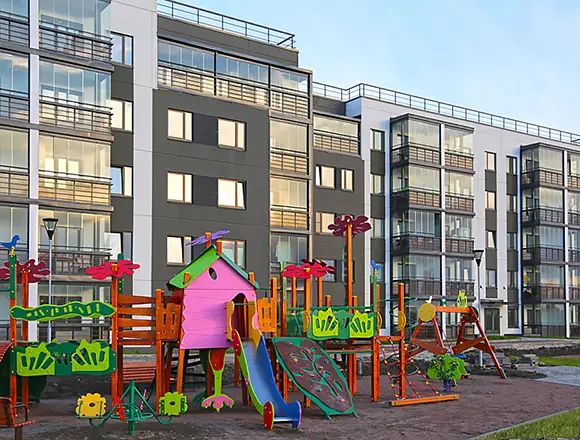 Уютно и удобно расположение квартала: Колпино – исторический пригород Петербурга, город с хорошо развитой инфраструктурой и 300-летней историей, но финский городок находится не в плотной городской застройке, а немного в стороне.