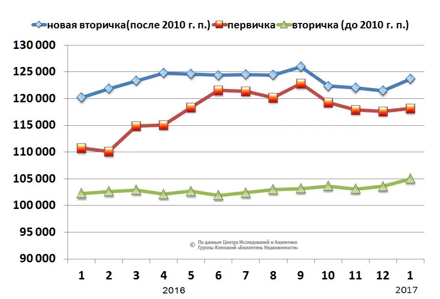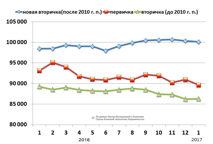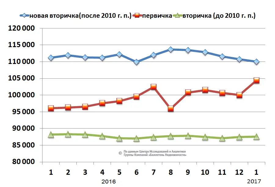 А вот в то, что средний ценник на первичке окончательно догонит или даже перегонит прайс новой вторички, эксперты не верят. Но для сближения обоих графиков есть целый ряд причин.