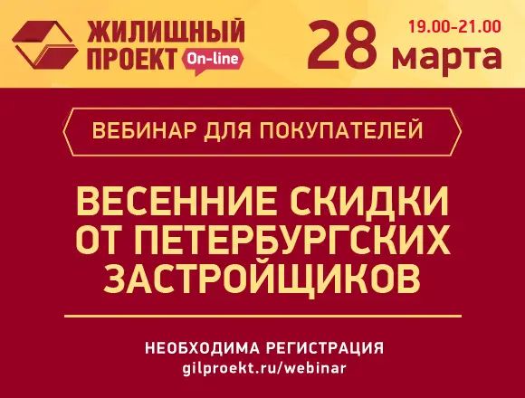 Участники вебинара смогут воспользоваться эксклюзивными весенними скидками, узнают о лучших акциях от ведущих застройщиков Петербурга и Ленинградской области.
