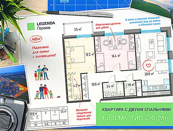 В жилом комплексе на проспекте Героев появилась новая планировка для семей с двумя детьми-близнецами или просто детишками одного пола с небольшой разницей в возрасте. Именно до таких мелочей компания продумывает свой продукт, и это – уникальный подход на рынке.