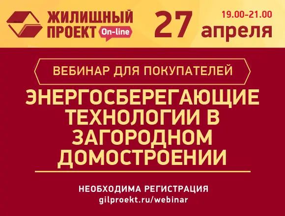 Бесплатный вебинар «Энергосберегающие технологии в загородном домостроении» состоится сегодня, 27 апреля, с 19:00 до 21:00.