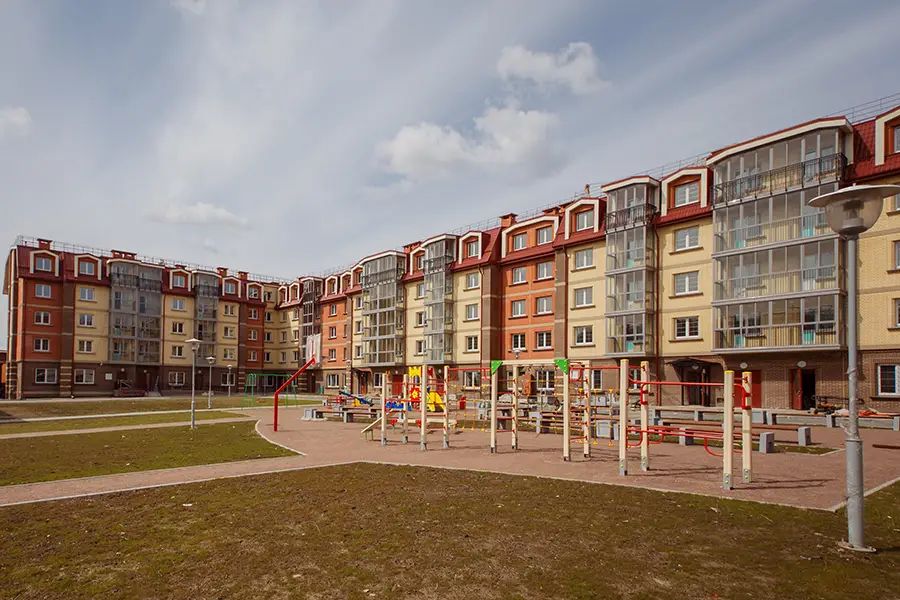 Жилой комплекс комфорт-класса «Царский двор» состоит из двух пятиэтажных корпусов, образующих закрытый двор с собственными детскими и спортивными площадками, живописными ландшафтными уголками и малыми архитектурными формами.