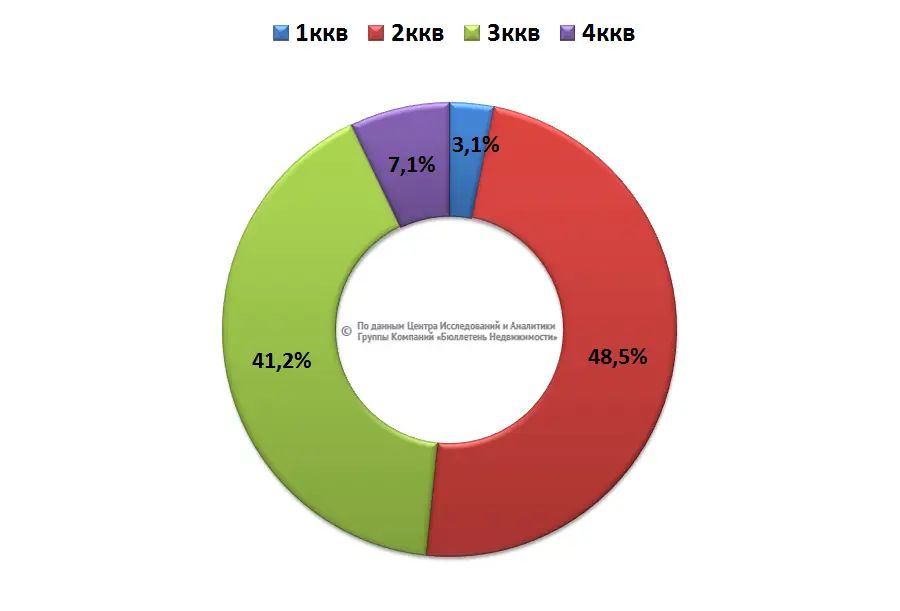 Квартиры в сталинских домах: структура предложения по количеству комнат (в среднем по Петербургу)