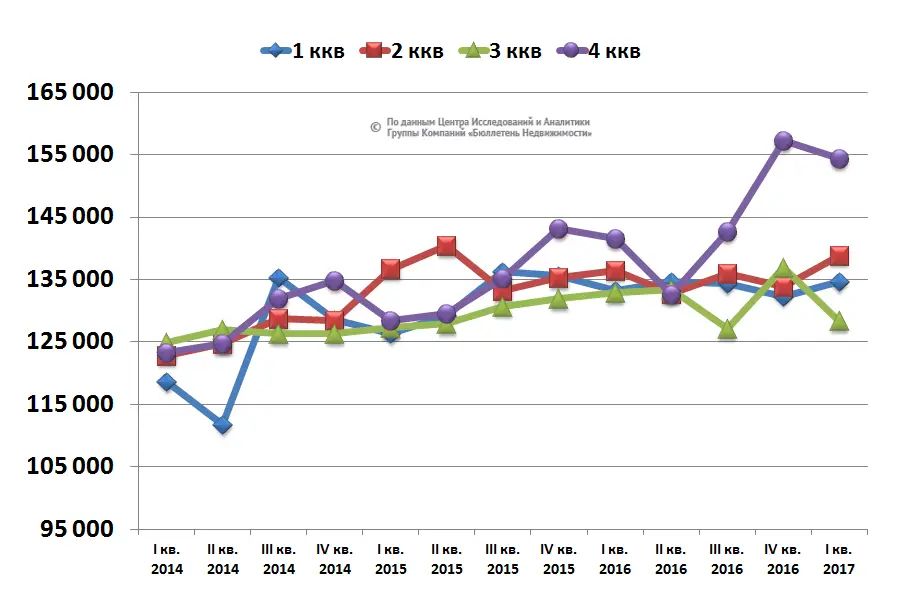 Динамика цен на квартиры в сталинских домах в Кировском районе Петербурга, руб./кв. м