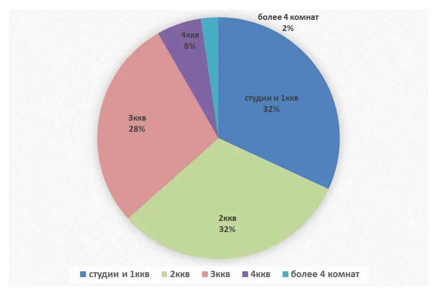 Структура предложения по типам квартир, % от общего объема