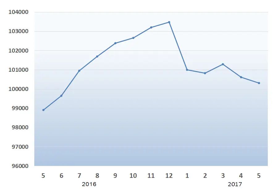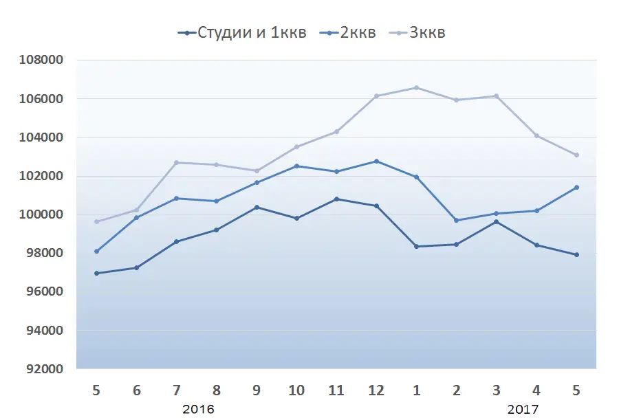 Средние цены квартир, выставленных на продажу, на конец мая 2017 года составили: