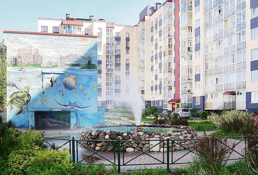 А еще в этом уникальном дворе есть уникальная трансформаторная будка. Здесь уже дали порезвиться молодежи, и все стены разрисованы небанальными граффити. Двор считается лучшим в поселке Колтуши.