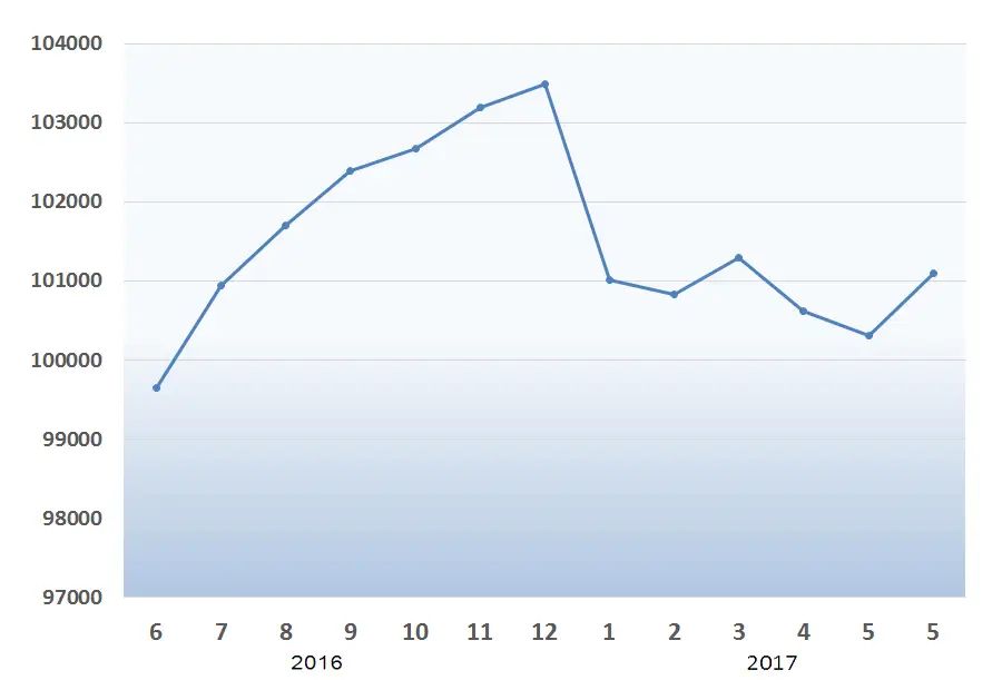 | Тип квартиры | Цена | Май 2017 | Июнь 2017 | Изменение за месяц |