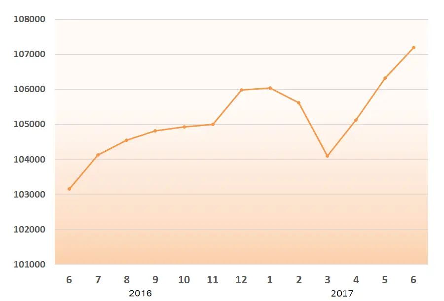 Средние цены квартир, выставленных на продажу, на конец июня 2017 года составили:
