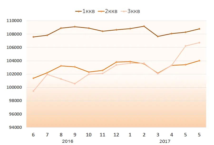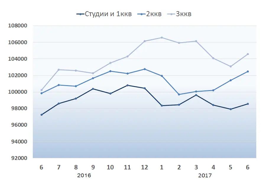 За июнь средняя цена квадратного метра однокомнатных квартир выросла на 0,5%, двухкомнатных на 0,6%. Трехкомнатные подорожали на 0,5%.