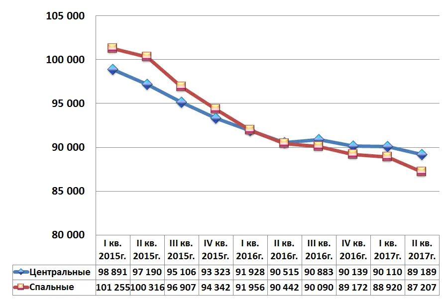 Средняя цена предложения комнат на конец II квартала 2017 года: