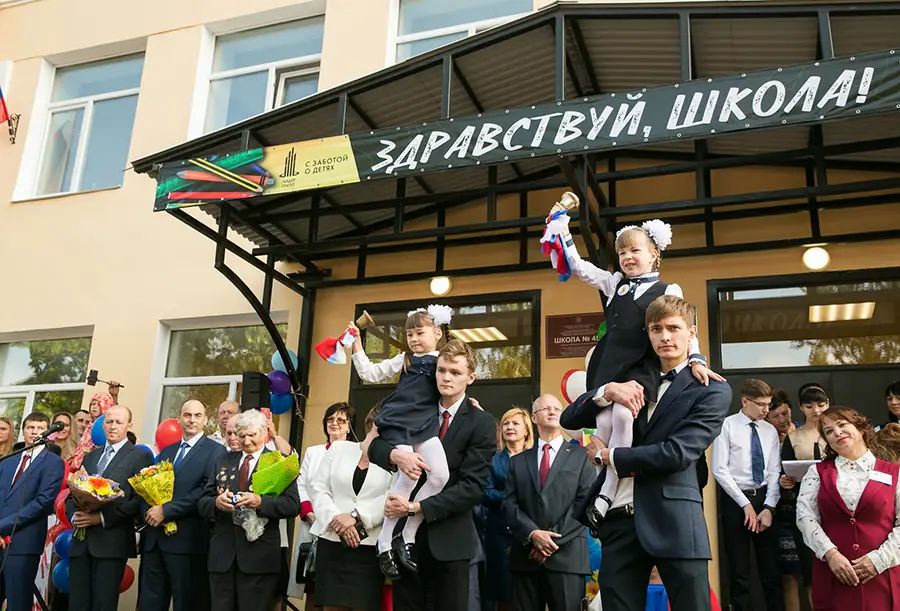 Поздравить детей и педагогов с открытием школы и началом нового учебного года приехал генеральный директор ООО «Лидер Групп» Сергей Гайденко. Он пожелал ученикам увлекательного путешествия в мир знаний, научных и личных открытий и выразил сотрудникам школы особую признательность за продолжение развития славных педагогических традиций, а также вручил директору ГБОУ СОШ № 459 Александре Суенковой символический ключ от нового здания.