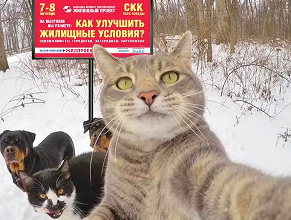 2) Сделайте оригинальное селфи с любой рекламой «Жилпроекта» или креативный тематический фотоколлаж (примеры – на картинках).