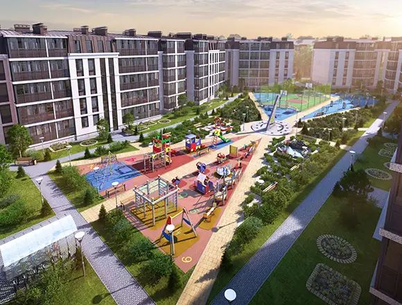 Расположение домов образует уютный внутренний двор, в центре которого будут установлены солнечные часы. Также на его территории запланированы детские площадки с безопасным покрытием, зона workout с тренажерами и полем для игры в мини-футбол, relax-зона с прудом и водопадом, а также city garden – участки для высаживания плодовых овощей, цветов и кустарников.