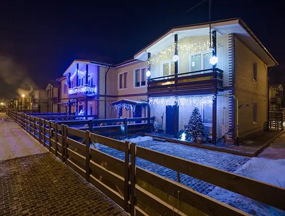 На крышах и изгородях, на заснеженных ветвях деревьев сияют огнями гирлянды, во дворах стоят наряженные разноцветными игрушками и мишурой елки, двери украшены новогодними венками, по вечерам зажигается мягкая подсветка. Так, общими стараниями, жители поселка создают на его улицах радостную и волнующую атмосферу зимней сказки для себя и соседей.
