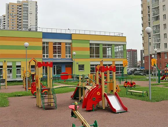 Территория детского сада, включающая восемь детских площадок для прогулок, – закрытая, огорожена забором по всему периметру. Безопасность обеспечивается специальными системами контроля доступа на территорию, в том числе видеоконтролем. Адрес детского сада – Санкт-Петербург, Дунайский проспект, 7, корпус 5, литера А.