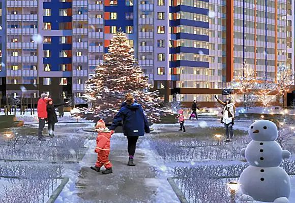 На территории комплекса будет выполнено ландшафтное озеленение, установлены контейнеры для раздельного сбора мусора, созданы площадки для спорта и игр из экологичных материалов, а также собственный парк с всесезонными деревьями. Кроме этого, в каждом дворе застройщик высадит декоративные ели, которые будут радовать жителей комплекса своей зеленью круглый год.