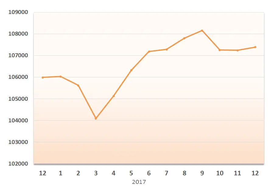 За минувший 2017 год средняя цена предложения квартир на вторичном рынке выросла на 1,3% – это 1399 руб. с кв. м.