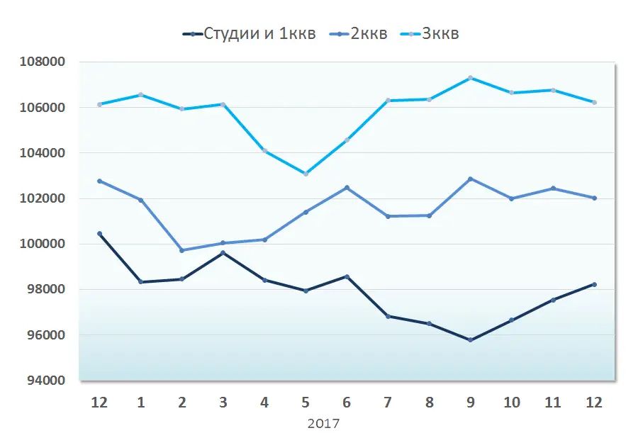 Средние цены квартир, выставленных на продажу, на конец декабря 2017 года составили