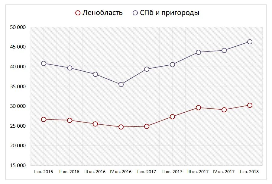 По итогам I квартала 2018 года средние цены предложений на рынке загородных участков немного подросли: по Ленинградской области на 1,4%, а по Петербургу и пригородам (с учетом Всеволожского района) на 2,5%.