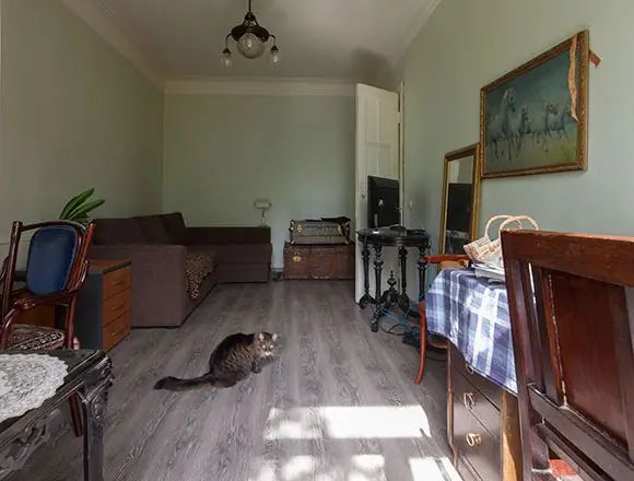 – Кот, ну зачем нам с тобой целый коттедж. Тем более что такие предложения бывают в продаже крайне редко. В основном здесь предлагают двух-, трех- и многокомнатные квартиры. А ведь изначально почти все они были заселены коммунальным способом – представляешь, сколько семей могло проживать в таком небольшом доме…