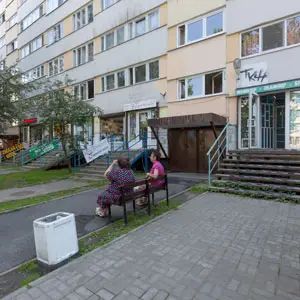 А вот и вход в подъезд. И бабушки рядом на лавочке, как и в любом питерском дворике.