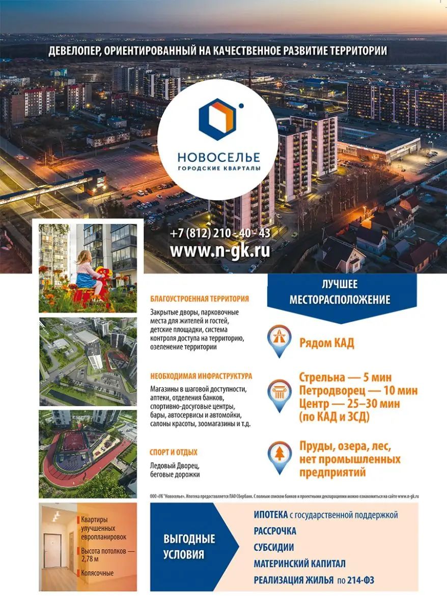 От метро «Московская» до Новоселья 20 минут, до аэропорта Пулково – 15 минут. До Петродворца тоже четверть часа, а до Стрельны и вовсе пять минут.