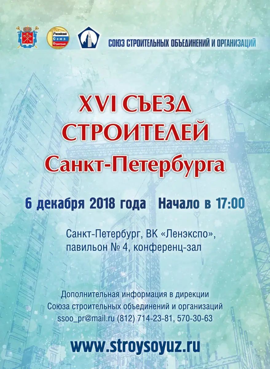 Союз строительных объединений и организаций приглашает предприятия и организации строительного комплекса поддержать проведение XVI Съезда строителей Санкт-Петербурга, забронировав инвестиционный пакет. Дополнительную информацию о возможностях партнеров можно получить в дирекции Союза.