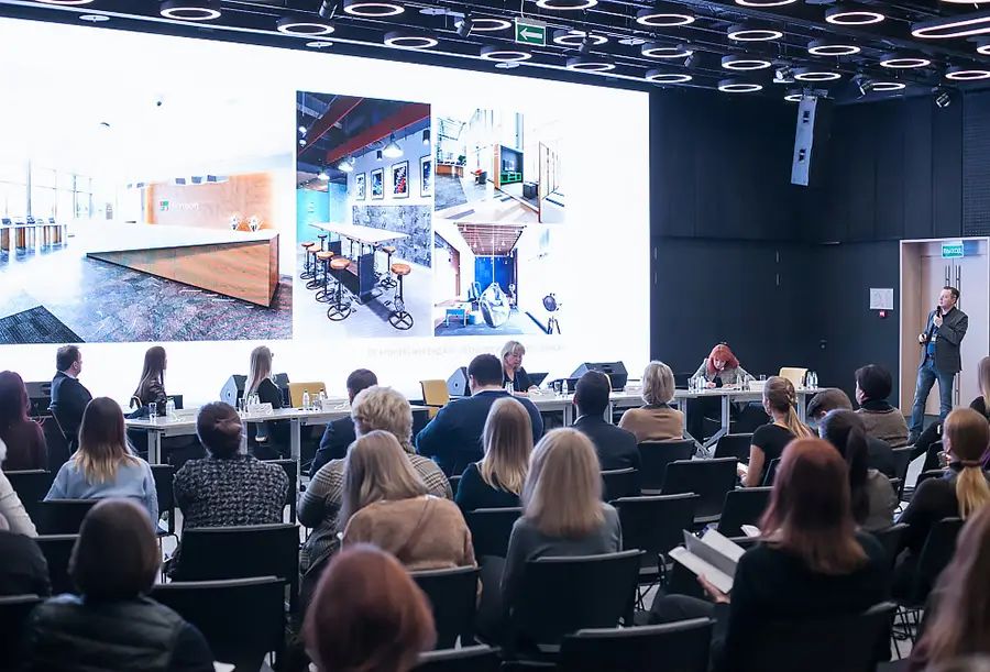 Так, в Большом зале представители заказчика и архитекторы обсудили офисы корпораций и цифровое будущее. Участники сессии при поддержке компании Fresh.Ideas for Offices поговорили о многофункциональных пространствах и smart working spaces, высоких технологиях и имиджевых решениях в организации корпоративных офисов и современных рабочих мест.
