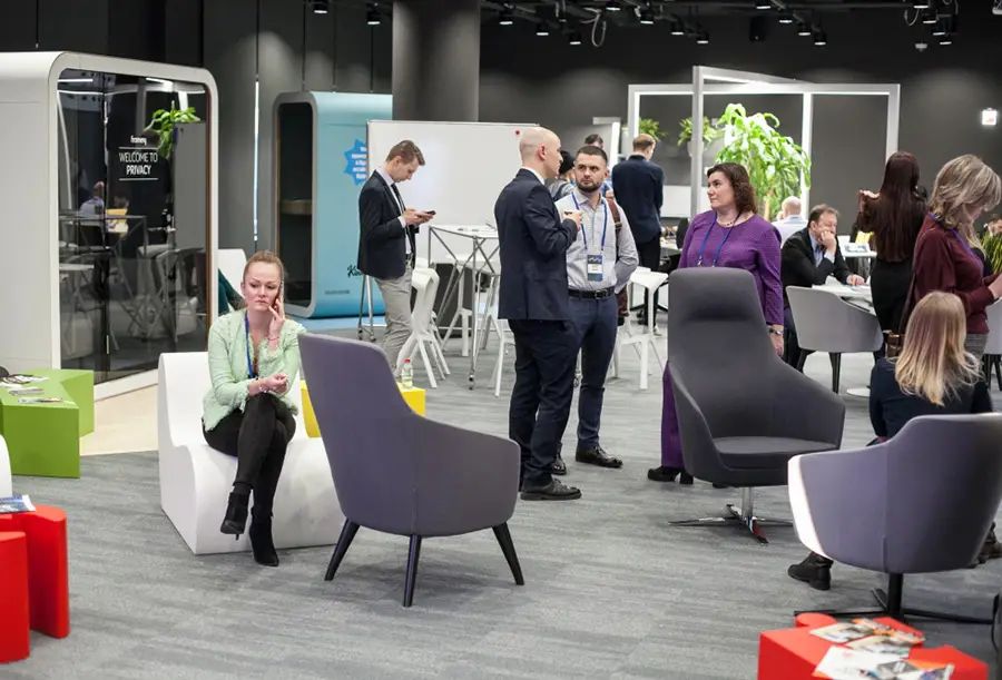 В течение всего дня для посетителей работала выставочная часть форума. Архитектурное бюро АРХКОН вместе с производителями и поставщиками офисных решений создали специальную экспозицию «Волна». «Волна» – концепт реального гибридного пространства, перетекающий из работы в отдых, из коммуникаций – в медитацию, из корпоративного обучения – в шоу-ивенты. Участие в экспозиции приняли Framery, Fresh.Ideas for Offices, HD Led Tech, Selecta, Sennheiser, Sixinch, Terrakultur, «ТП-Проект». Авторы концепции – Сергей Коннов, основатель OfficeNext, и Антон Чупилко, директор по инновациям LargeScreen.ru, член правления RuGBC.org.