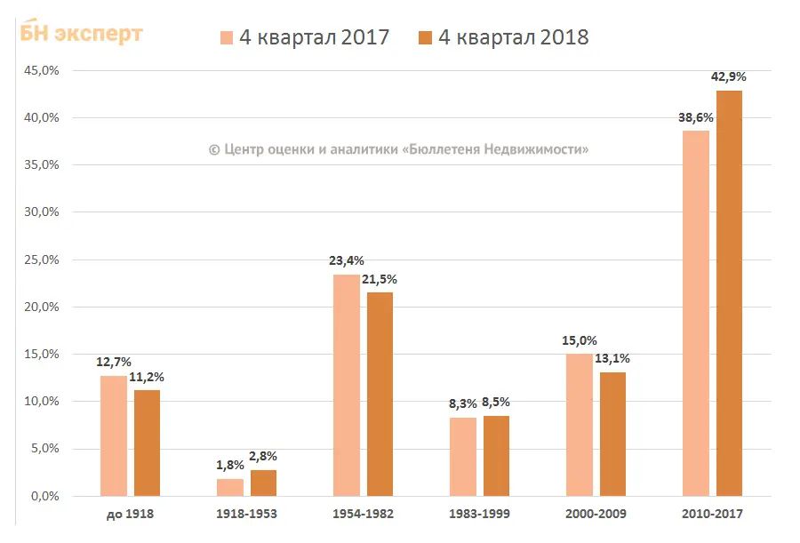 Это связано с большими объемами строительства и ввода на рынок новых объектов. То есть происходит замещение дешевого предложения квартир в старых домах квартирами, расположенными в зданиях современной постройки.