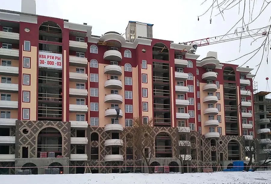Далее: ЖК «Граффити» на проспекте Королева от девелопера СК «Ойкумена» (застройщик – ООО «Форум»). Монолит, 10 и 24 этажа, комфорт-класс, 4,7 тыс. квартир. Четыре очереди строительства уже сданы, пятая сдается в IV квартале 2019-го.