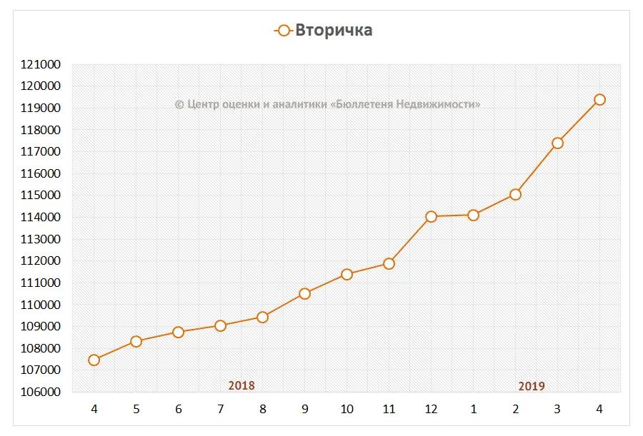 Средняя цена предложения на вторичном рынке жилья Санкт-Петербурга к концу апреля составила 119,4 тыс. руб. за кв. м. Это на 2008 руб. дороже, чем в марте. В то же время квадратный метр новостроек подорожал только на 906 руб.