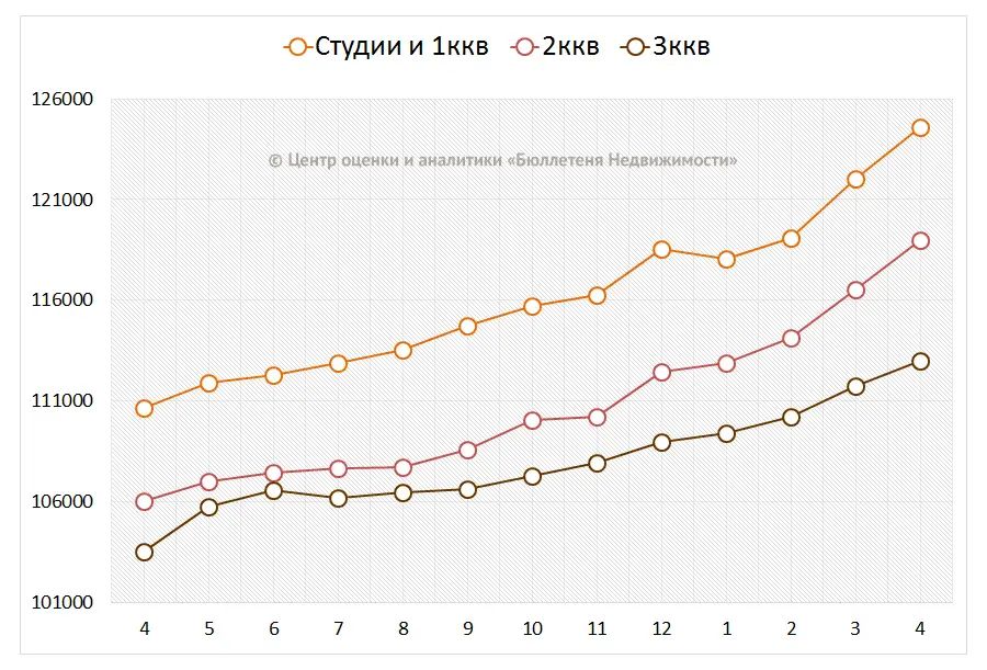 В апреле 2019 года значительнее всего подорожали студии и однокомнатные квартиры – на 2,09%. Двухкомнатные показали рост на 1,67%, трехкомнатные – на 1,14%.