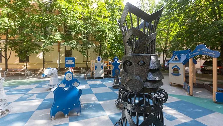 На Загородном проспекте есть настоящее шахматное королевство. И это благодаря мастерской монументального искусства «33 плюс 1», оформившей двор по мотивам сказки «Алиса в стране чудес». На детской площадке появилась шахматная доска с металлическими фигурами, а со временем ее дополнили домик Труляля и Траляля, стол для чаепитий и гусеница на грибе. Дворик уже получил известность среди жителей и гостей города, став своеобразной неформальной достопримечательностью.