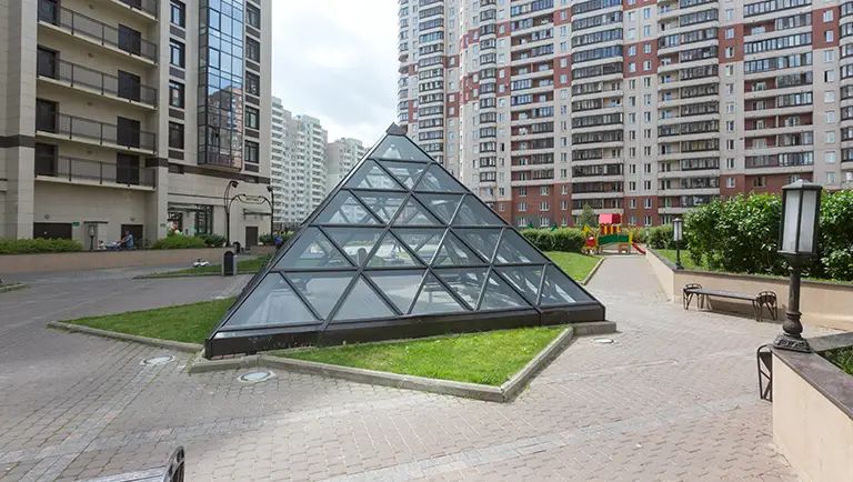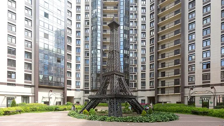 В атмосферу Парижа можно погрузиться и в Петербурге, стоит лишь попасть в один из дворов на проспекте Космонавтов. Здесь представлены миниатюры самых известных парижских достопримечательностей – пятиэтажная Эйфелева башня, стеклянная пирамида Лувра и Триумфальная арка. «Французскости» добавляет особый дизайн фонарей и названия подъездов по провинциям Франции.