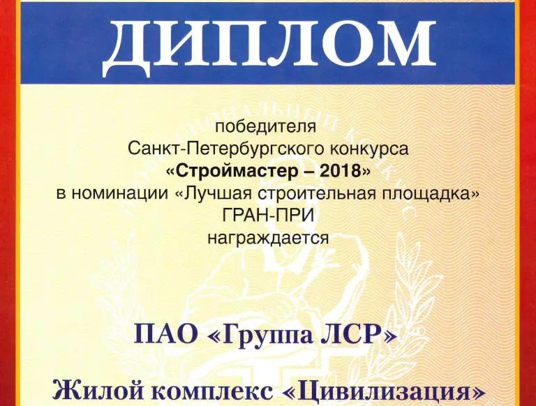 Жилой комплекс «Новая Охта» был удостоен диплома I степени в номинации «Лучшая строительная площадка и бытовой городок», а проект комплексного освоения территория «Цивилизация» получил звание Гран-при в номинации «Лучшая строительная площадка».