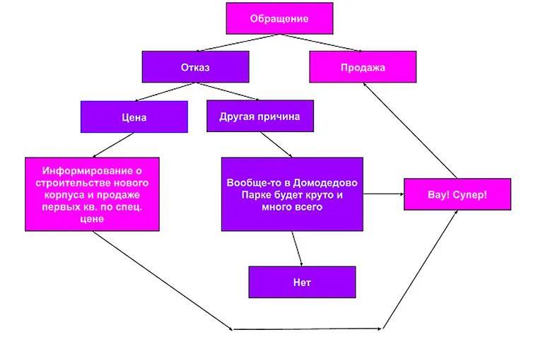 Воронка продаж состояла всего лишь из нескольких этапов, которые заканчивались или заключением договора, или отказом от сделки, тем самым завершая цикл продажи. На каждом этапе воронки автоматизировали действия менеджеров.
